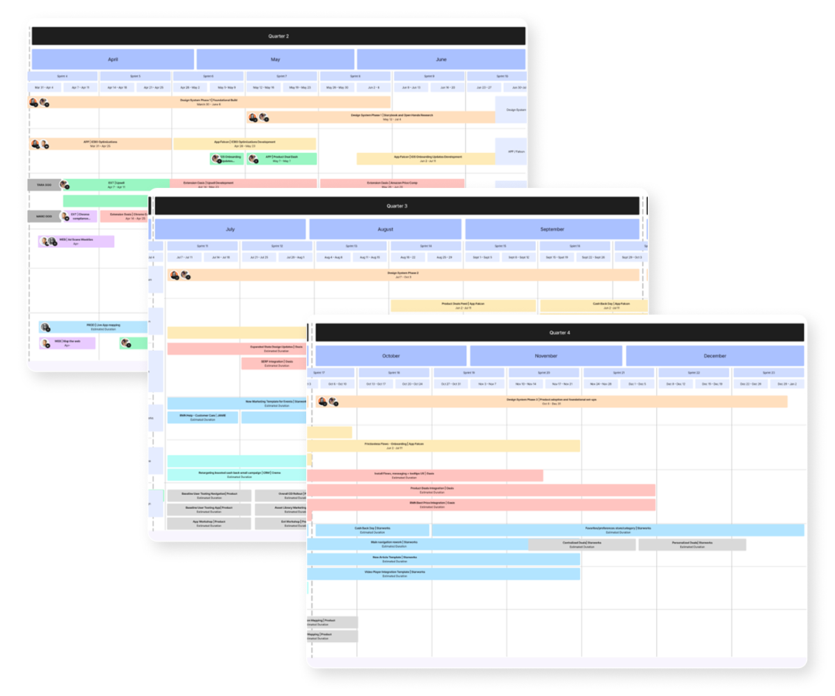 After we purchased our base design system “Align UI”, we needed to comb through it to conduct a side-by-side comparison of the foundational elements we’d need to make based off of our current product and marketing needs. Once we had a set structure, I set up a meeting with leadership to layout the quarterly plan that would serve as our project timeline from ideation, to testing and lastly product implementation. In 3 quarters we would be ready for full adoption, storybook ingestion and implementation.