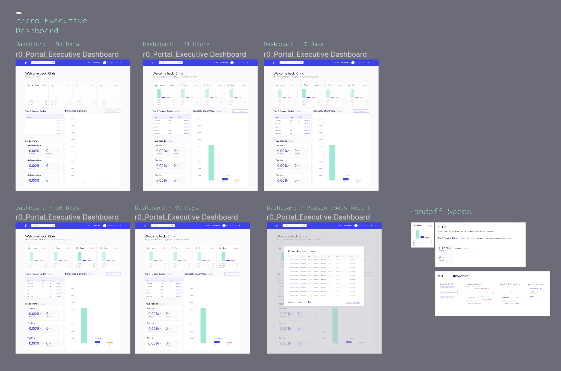 rZero executive dashboard within the client portal.